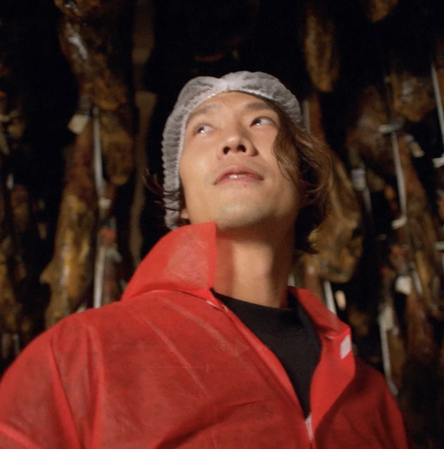 吉田能さんは複雑な味のイベリコハムを口にし、スライス1枚1枚の中に正確さと気配りのストーリーを見い出しました。深く、絶妙で、自然への敬意からなる本格性があり、料理をする際に模索する目的意識や同じハーモニーを感じ取りました。